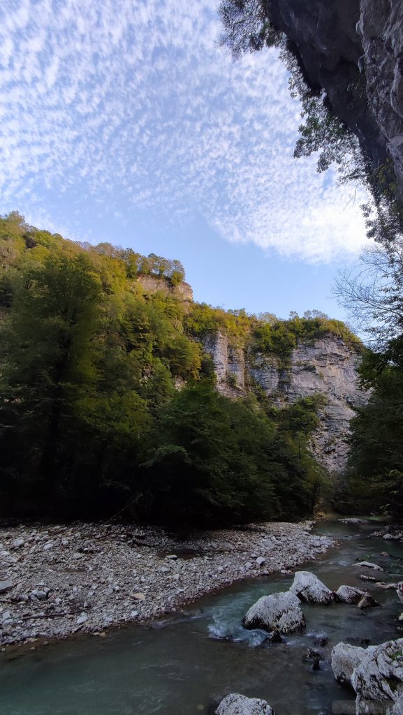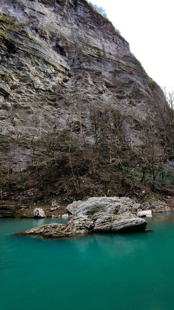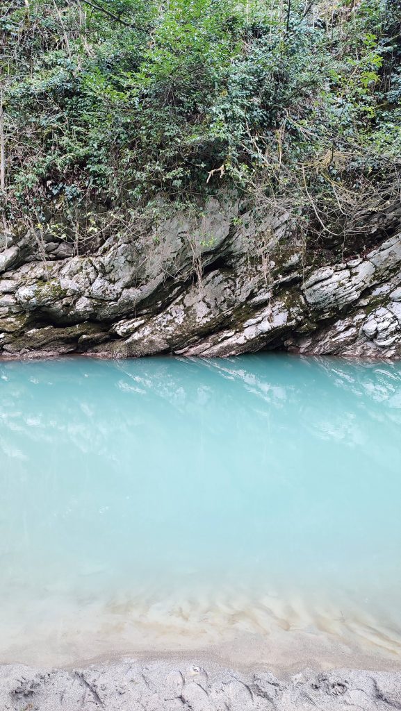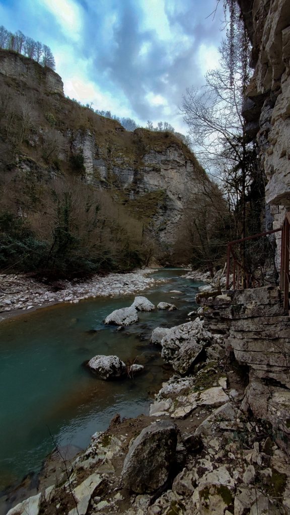 В середине маршрута вы увидите руины византийской крепости, сохранившиеся ориентировочно с X века. Это место позволяет буквально прикоснуться к истории и представить, как эти земли выглядели задолго до появления современного Сочи. Продолжая путь вдоль реки Хоста, вы подойдёте к таинственной пещере с застывшим каменным водопадом, а также сможете попробовать кристально чистую воду из природного родника.